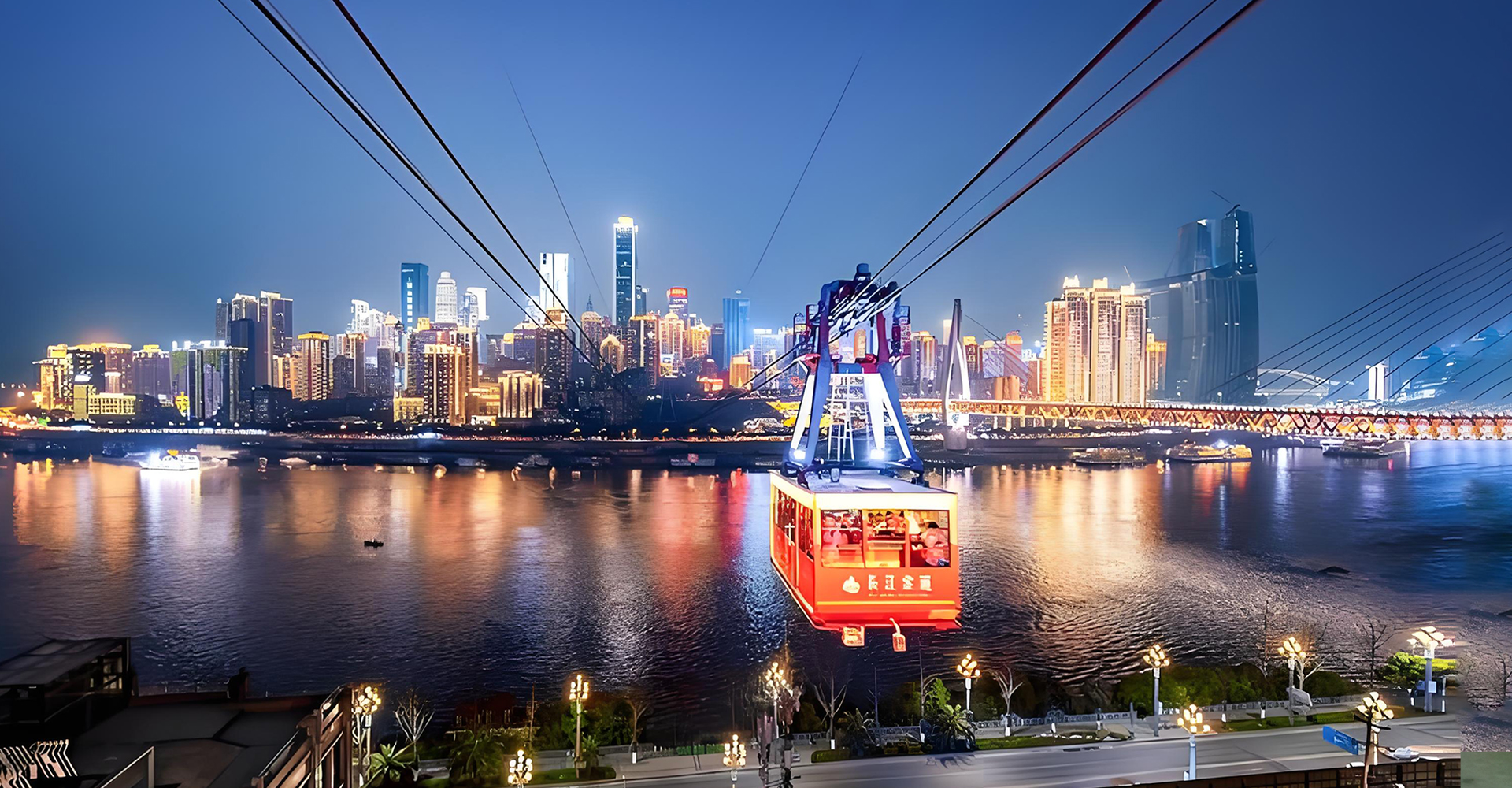 長江索道:重慶市級文物保護(hù)單位,北起渝中區(qū)新華路,跨長江至南岸區(qū)龍門浩上新街,是繼嘉陵江客運(yùn)索道建成營運(yùn)成功之后,又興建的萬里長江空中第一走廊。索道于1986年3月20日動工興建,1987年10月24日竣工通車。工程總投資1450萬元,占地面積5188m2,總建筑面積7397m2。索道全長1166米,車廂定員65+1人,車速0.3—10米/秒,設(shè)計(jì)客運(yùn)量3萬人(次)/日;2013年12月被評為國家級3A級風(fēng)景區(qū),2017年旅游人次突破400萬人次,2018年1月被評為國家級4A級景區(qū),2019年旅游人次突破500萬人次